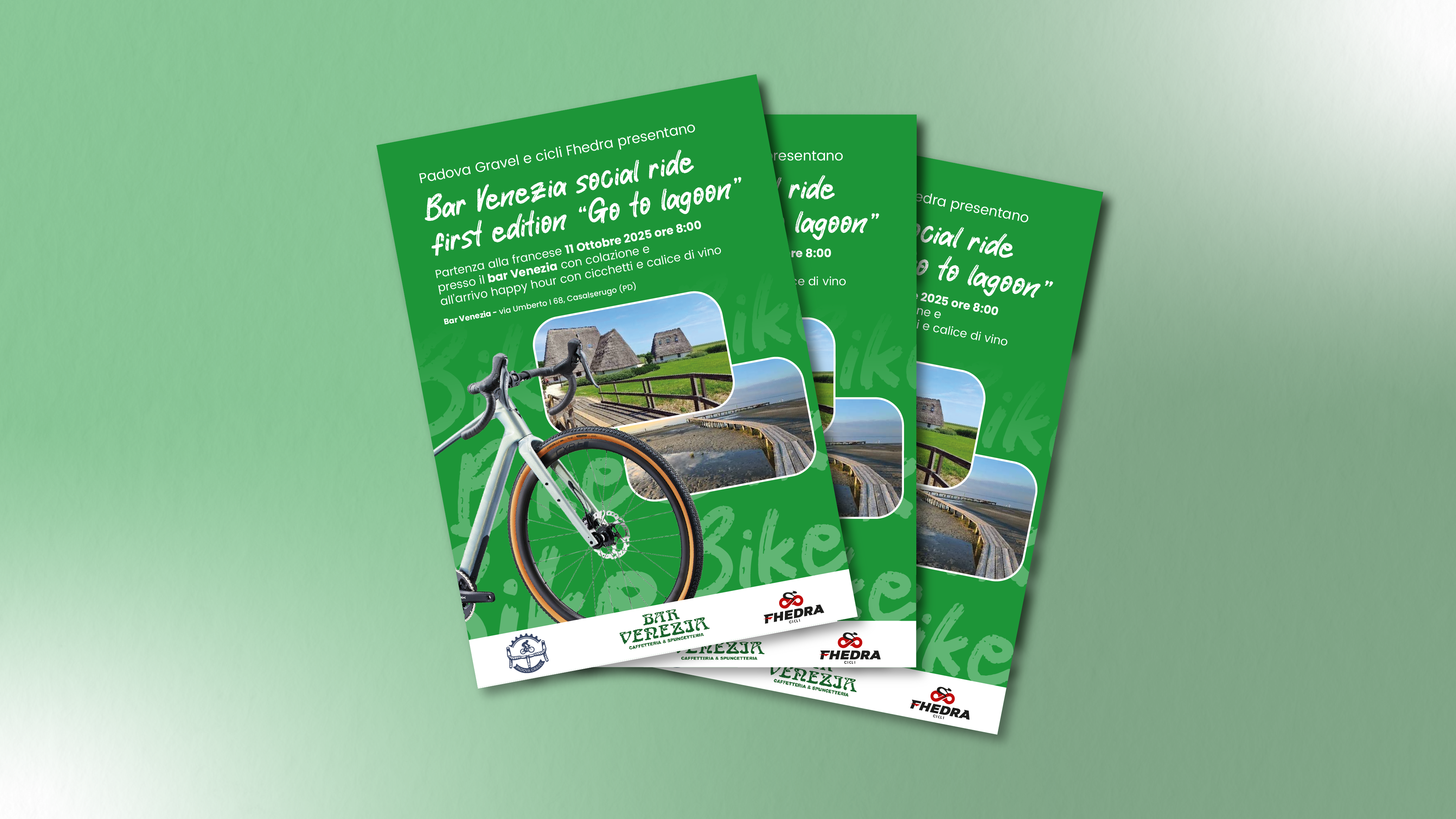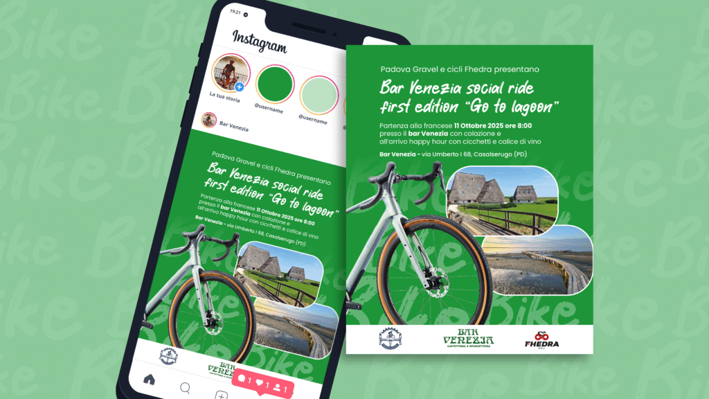 Il risultato: un’identità visiva pulita, efficace e immediatamente comprensibile. Il design di Go to Lagoon comunica l’essenza dell’evento in un solo sguardo: un’esperienza di gravel bike immersa nella natura, dove passione sportiva e rispetto per l’ambiente si incontrano.